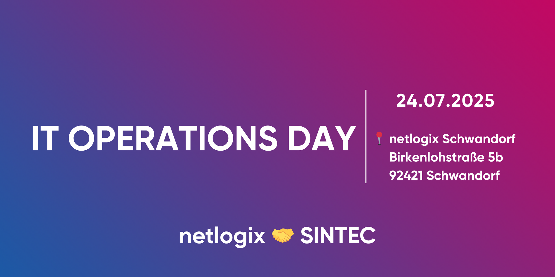 Beim IT Operations Day in Schwandorf zeigen wir gemeinsam mit SINTEC, wie Unternehmen durch Managed Services, Automatisierung und moderne Sicherheitslösungen ihre IT nachhaltig entlasten und fit für die Zukunft machen – praxisnah, verständlich und direkt anwendbar.